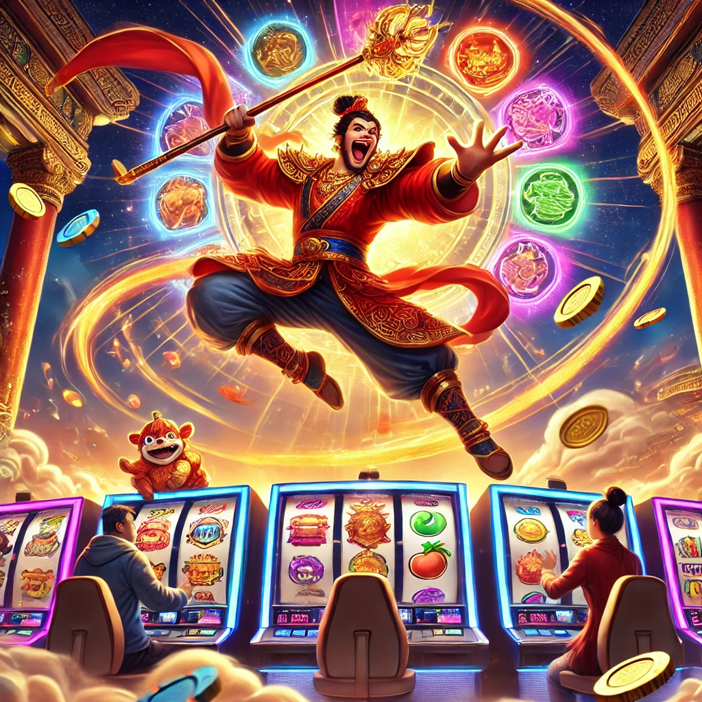 • 功能特性:當 Wild 符號出現在支付線上時,能顯著提升玩家的中獎機會。舉例來說,如果支付線上出現兩個孫悟空符號並加上一個金箍棒符號,則金箍棒可替代為第三個孫悟空符號,從而觸發更高的賠付倍數。